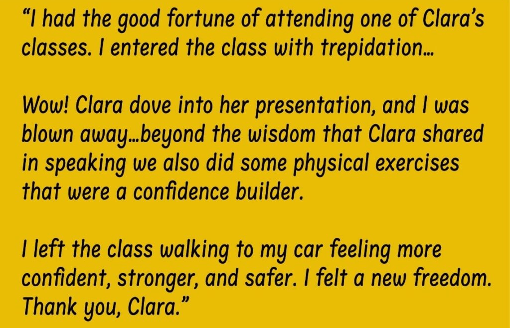 (Before sharing the physical exercises, Clara delivered a powerful talk in a workshop that left a strong impression. As a result, Sharron shared the following reflection:)